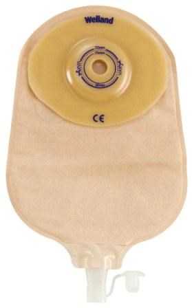 400 ml WELLAND Flair Active Curvex urostomipose med en tredimensionel hudplade.